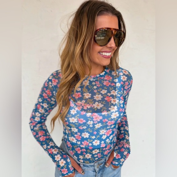 OUR SPRING PRINTS ARE HERE!! Super cute for layering, this sultry stretchy mesh print long-sleeve top features a totally sheer design. Perfect worn alone or paired under your favorite cardigan, vest or sweater!