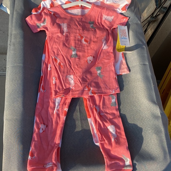 NWT 3T pajama set. Pink with rabbits and white and pink with hearts. Pants and t shirts. Carters pJs