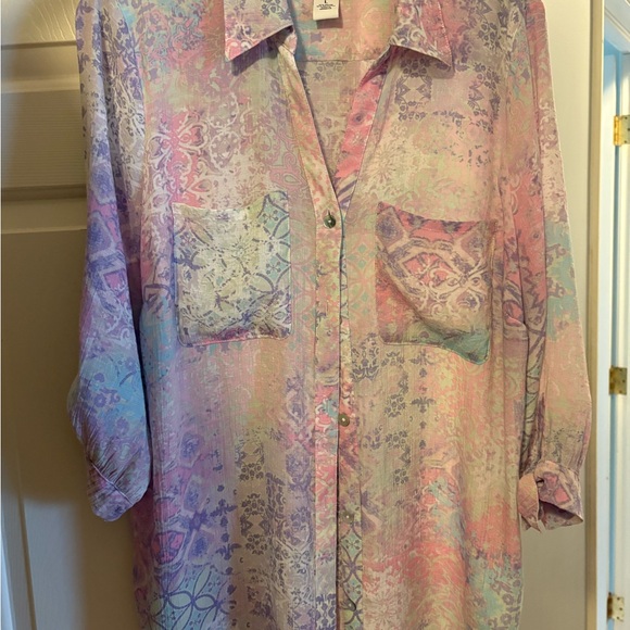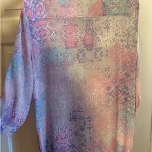 Flattering top blouse Ruby Rd. Women’s L. Pretty pastel pattern button down collar