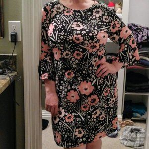 Cute little Tommy Hilfiger party dress with flirty pink flowers, bell sleeves and gold accent trademark zipper pull. Worn once. Smoke free, cat friendly home.