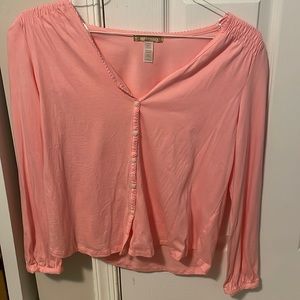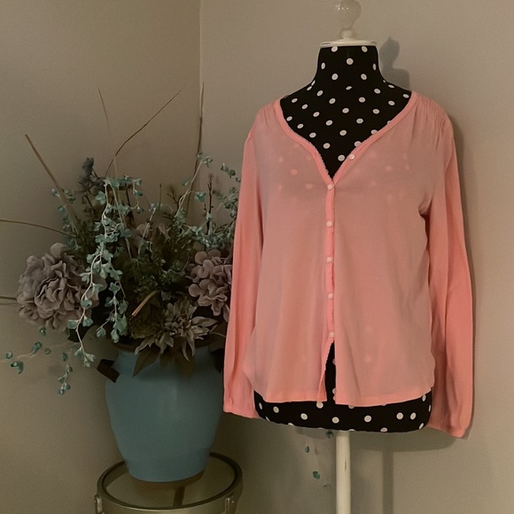 Springtime pretty pink button down long sleeve top or cardigan. Made 100% prima cotton size small