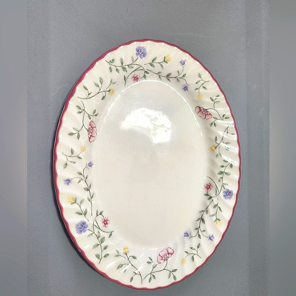 Super cute Spring serving dish. Made by Johnson brothers, fine English tablewear made in stanffordshire, England. Summer Chintz, dishwasher and microwave safe.