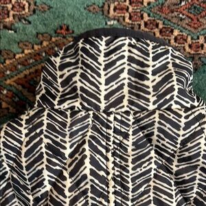 Elegant Primaloft black and white Lands’ End jacket with black piping, full lining, two lined zip front pockets, standup collar. Small Tall so it runs a little big for a small.