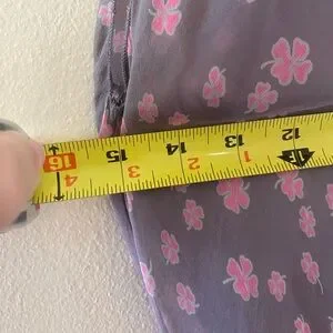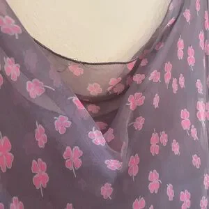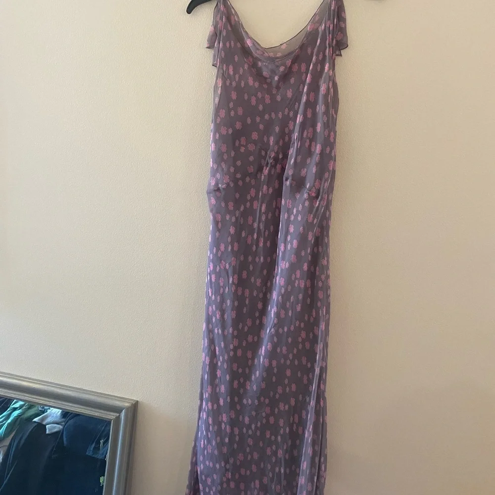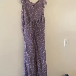 Chic purple dress with pink polka dots. Perfect for a stylish outing.