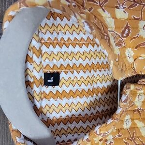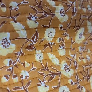 gorgeous floral quilted jacket, pretty yellow flowers with a camelish color. never worn, brand new. size L on tag but definitely more of a small/medium.