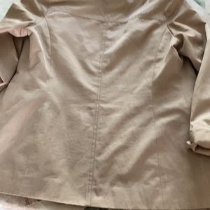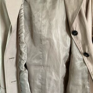 Great condition. Removable hood. Sleeves 16 1/2 inches rolled up or 18” total length. Nice lining. 28” length. Says dry clean but I’ve washed in cold water and hang dry. Nice heavier fabric. 19” end to end at middle buttoned waist.