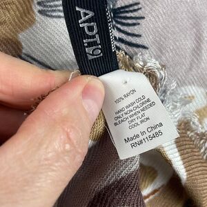 Apt. 9 Spring Ready Browns and Grey Abstract Floral Lightweight Infinity Scarf. Features lightweight 100% rayon fabric shades of brown, black & grey abstract floral print, fringe trim sides. Gently worn and clean with a few snag lines (see pics) which are hard to notice when on due to amount of fabric and the drape of the piece. A great spring weight scarf in a pretty floral print!