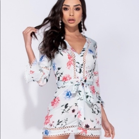 We can’t get enough of this romper! It is a great piece for spring, pairs well with heeled sandals and statement earrings. This floral print romper is complete with lace trim and ties at the waist. Totally a wardrobe must!! Available in US sizes - 2, 4, 6, 8 and 10! .