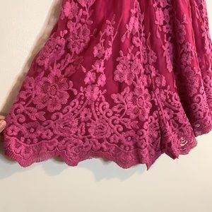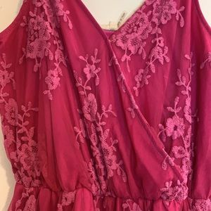 Beautiful boutique romper with lace detailing. Has a cross neck line
