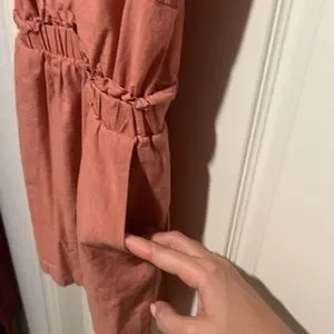 Romper with adjustable straps and pockets. Elastic sinch waist band is super flattering. Size S