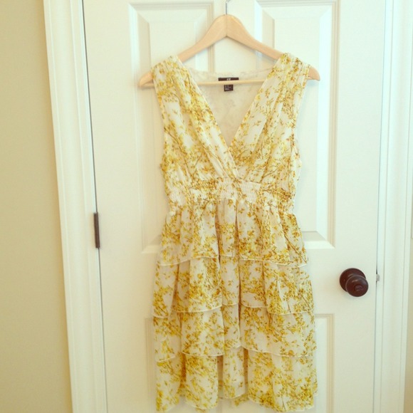 Fun dress for spring! Sleeveless v-neck dress with high waist and tiered ruffle skirt. Flirty, fun and feminine. Great condition - worn once!