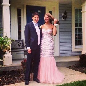 Beautiful, lightly worn once and includes original tags. See the sequin detailing in pictures. A beautiful prom dress that will make you feel like a princess! Originally retailed at $550. It was bought in 2014 and was a custom design for the shop. It's a size 10 and the fit is very flattering. Make an offer or bundle for 20% off!