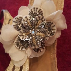 Ladies Wedge Spring Sandals, gold & cork Size 8