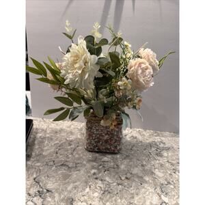 Perfect for all occasions, this flower bouquet is made of mixed materials including silk and glass. The arrangement stands alone and is 15 inches tall with a width of 11 inches. The bouquet is a great centerpiece for any table and is sure to impress your guests. Bring the beauty of the beach into your home with this stunning floral arrangement.