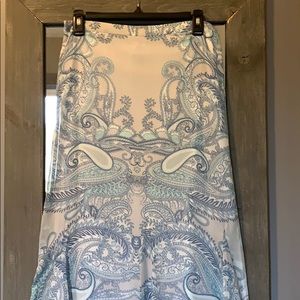 Soft colors for spring, ankle length, lined, back zipper, soft pleats at the bottom let the skirt flow. Perfect/excellent/like new condition.