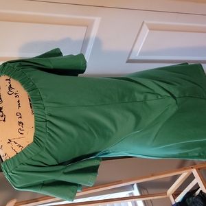 Teal In Color, Soft Material, Short Sleeves That Flow, And Can Be Worn Off The Shoulder! Not Slim Fitting, Chest Has Elastic Band! Worn Once! Great Condition!
