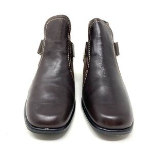 -Soft square toe, high quality leather, padded collar, antiqued metal hardware, flexible outsole.