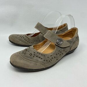 Spring Step Bethany Light Brown Mary Jane Perforated Leather Shoes.