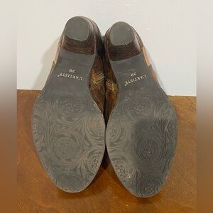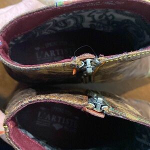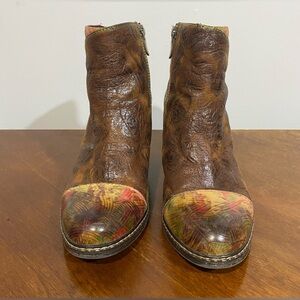 Spring Step Waterlily leather boots from the L’Artiste collection, embossed look with rainbow stitching