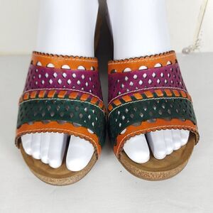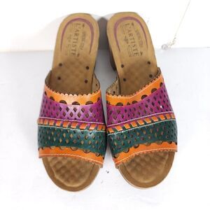 Spring Step By L'artiste Women’s 38 US7-7,5 Multicolor Leather Slide Sandals .