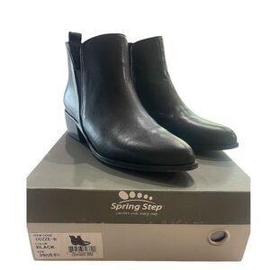 Spring Step Cozze Black Leather Ankle Booties Size 8.5 or EU 39