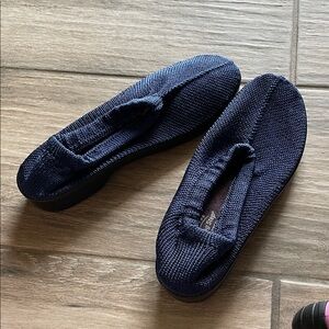 Stylish deep blue knit slip-ons. Ideal for everyday comfort.