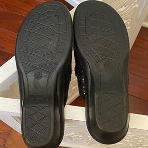Easy to slip-on Italian made clog style shoe with adjustable strap. Another "bought for kiddo: rejected" worn for plane travel one time (easy on/off at airport security)