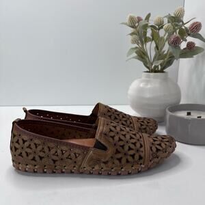 Spring Step Flowerflow Slip on Laser Cut Flat Light Brown Women 10.5 NWOB