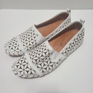 Spring Step Flowerflow White Leather Perforated Loafers Moccasins 41