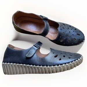 Spring Step Inaria Black Leather Cutout Mary Jane Comfort Shoes Women’s 42 EUC