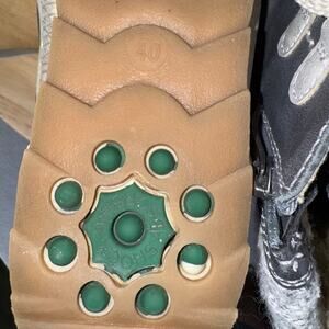 Minimal signs of wear. Excellent condition. Small bubble in the leather on inside of the right bootie(seen in photo).
