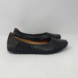 Spring Step Kenyetta Black Gold Perforated Leather Comfort Flat