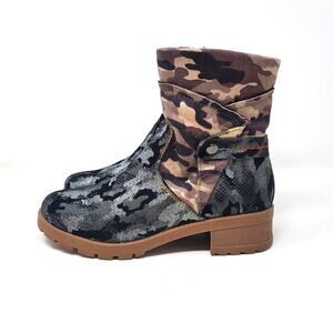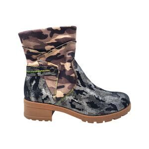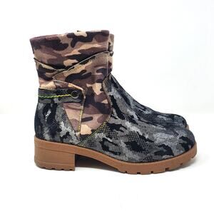 Spring Step L'ARTISTE Camo Fashion Boot Genuine Leather Black Beige Size 38/ 8