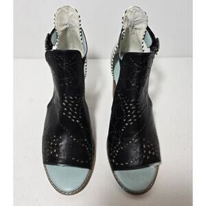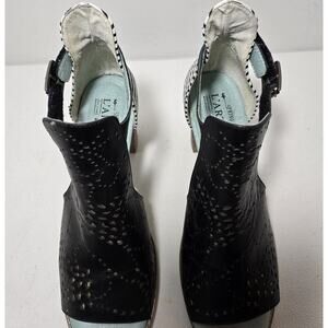 Spring Step L'Artiste LASHON Black Leather Strips Stack Heel Sandals Sz 39 US 9