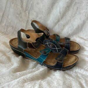 Spring Step L'Artiste Melissa Sandals Womens 39 Navy Strappy Leather Comfort