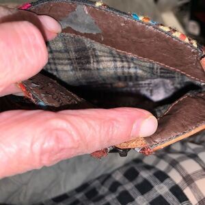 Condition: Fabric is in excellent condition; leather is in excellent condition with a few nicks (see pictures); inner leather at top has wear; soles/heels are near perfect