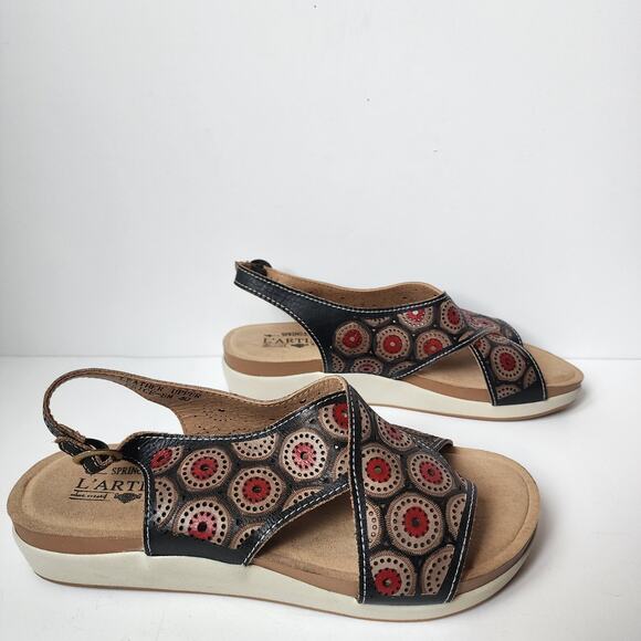 Spring Step L'Artiste Sandals Erice Womens Size 40 EU 9 US Black Red Cutout