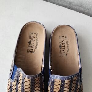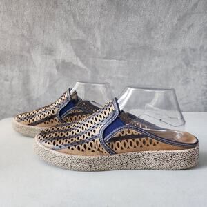 Spring Step LArtiste Shoes Womens 8.5 Leather Mules Tan Navy Blue Lattice EU 39