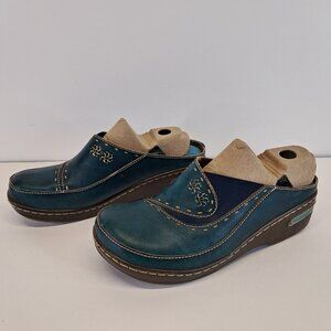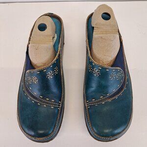 Spring Step L'Artiste Teal Chino Clogs Leather Mules Size 41