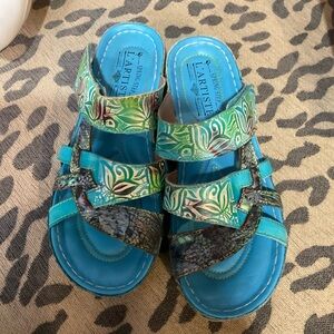 Spring Step L’Artiste Women’s Bright Turquoise Self Adhesive Closure Sandals 38