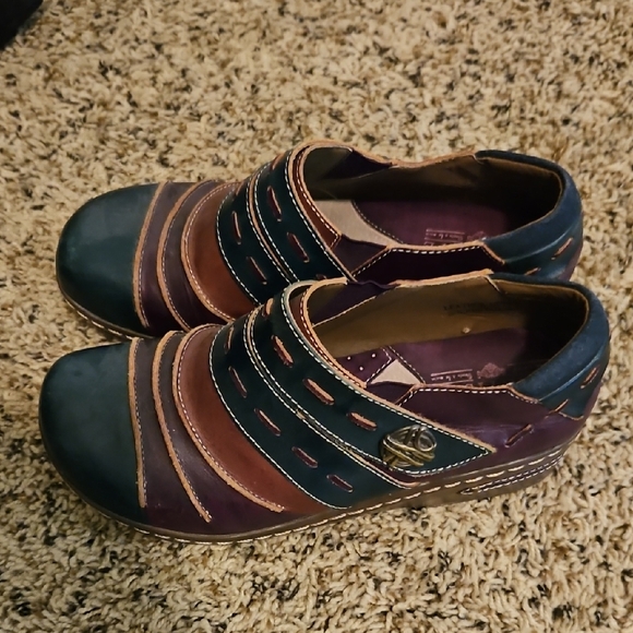 Step out in style with these multicolor women's shoes. Featuring a blend of blue, brown, and purple, these shoes offer a unique and fashionable look. Perfect for any casual outing, work, or occasion.