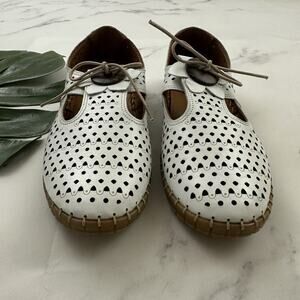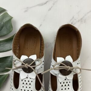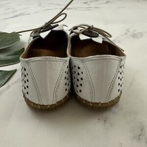Spring Step women's white perforated leather bow and flower trim flats, size 41. They are free from any rips or stains.