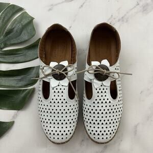 Spring Step Perforated Leather Flats Size 41 White Mary Jane Flower Bow Comfort