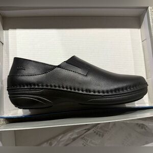Size 7 1/2 Black slip on shoe. Brand new kept in box. Box might have some wear and tear on outside from sitting. Comes from a smoke free, pet friendly home.