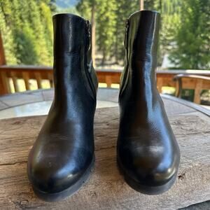 Spring Step RAVEL Black Leather Wedge Ankle Boots SZ 38 SOFT Lined Comfort Shoe