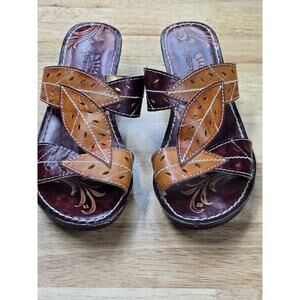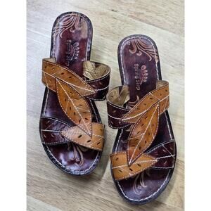 Spring Step Sandals Womens 6 Azalea Leather Leaf Cut Wedge Slip On EU 36 NWOB
