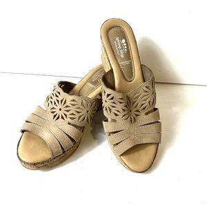 Spring Step Sandals Women's Size EU 41 US 10.5 Wedge Tan Cutout Leather Slip On Comfort Casual