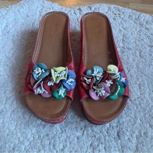Spring Step Slip On Multicolor Leather Flowerchild Platform Wedge Sandals Sz 41