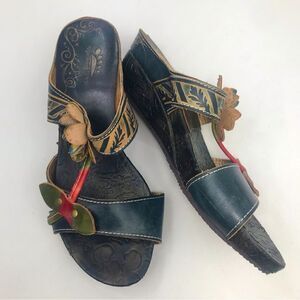 Spring Step TROPIC Tooled Leather Colorful Flower Slip On Wedge Sandals
