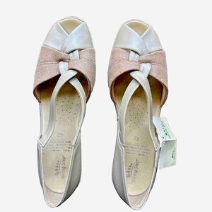 Spring Step Women Leather Beige Slip On Mini Wedge Heels Comfy Shoes Sz 10.5 NEW
